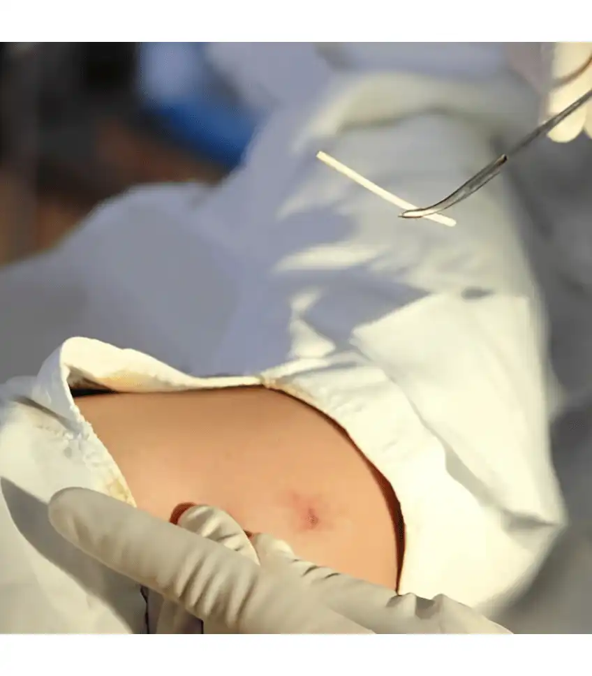 • Bước 3: Bác sĩ rạch một đường nhỏ tại vị trí đầu que cấy, dùng tay ấn nhẹ một đầu que cấy để đẩy que về phía vết rạch, rồi nhẹ nhàng kéo que cấy ra bằng nhíp chuyên dụng.